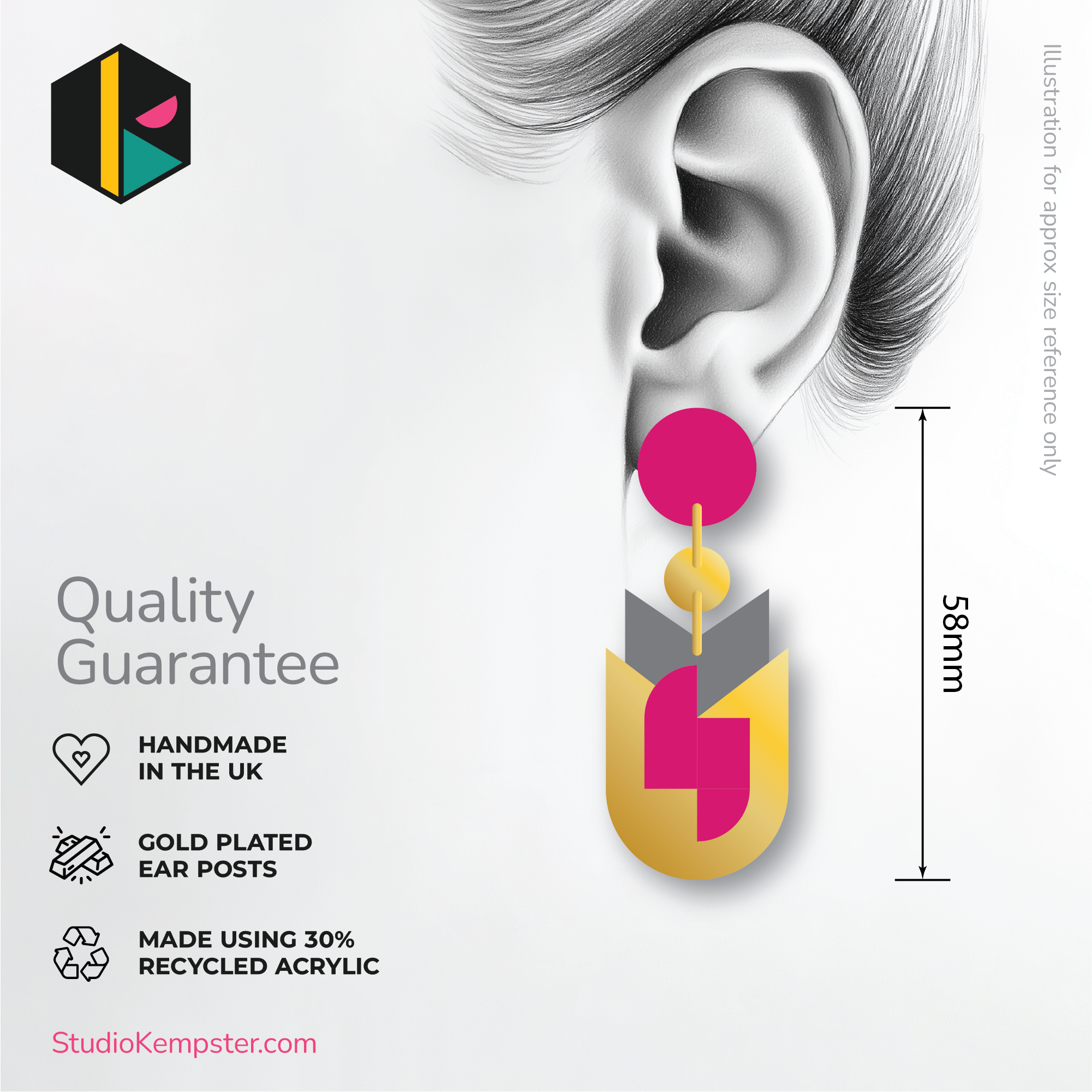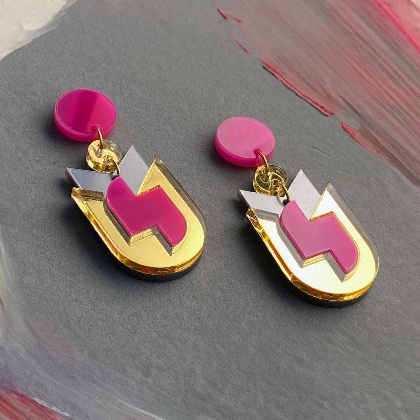 Handmade from lightweight acrylic for comfortable all-day wear. Perfect for adding gentle colour and modernist geometric elegance to any outfit.