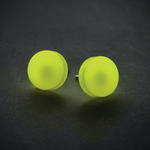 Retro-futuristic minimalism with a punch of neon energy. The Luma Studs glow in fluorescent yellow acrylic, radiating light and movement with every angle. Compact yet powerful, they bring a modern digital edge to your look — think 80s arcade meets now.
